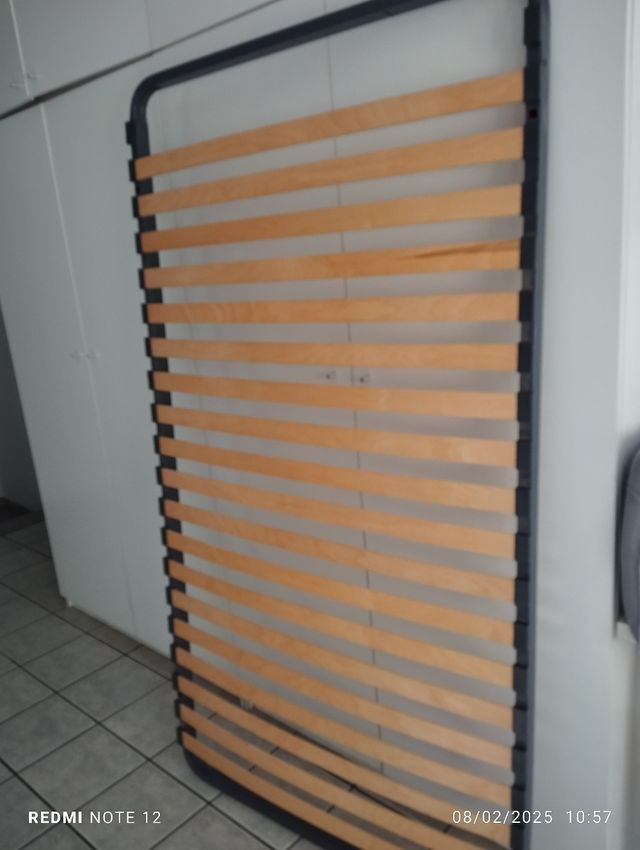 Detalles del productoSomier de laminas de madera, con patas muy robustas, como nuevo, solo le falta una lamina la que va a los pies, pero eso no es inconveniente, no afecta para nada.