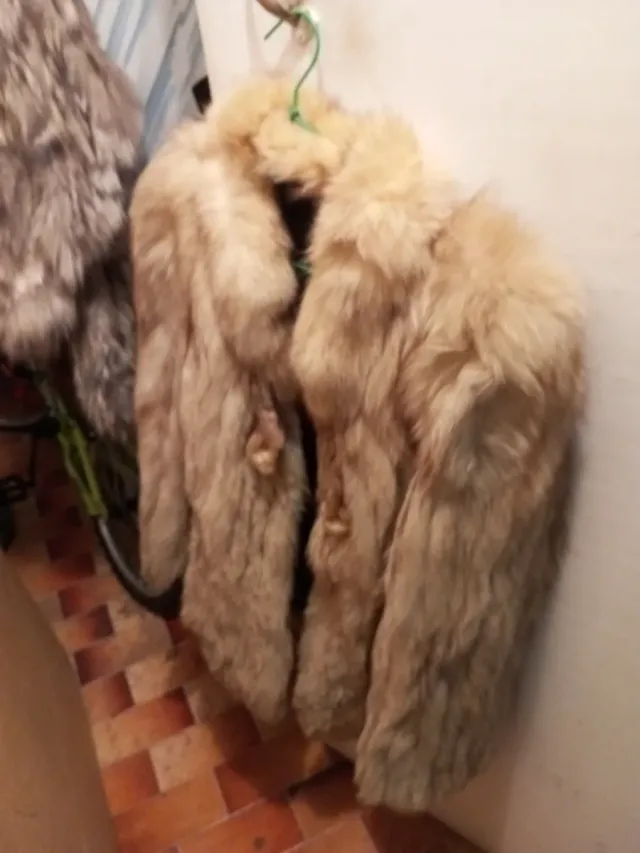 Abrigo piel de zorro canadiense tonos beige .