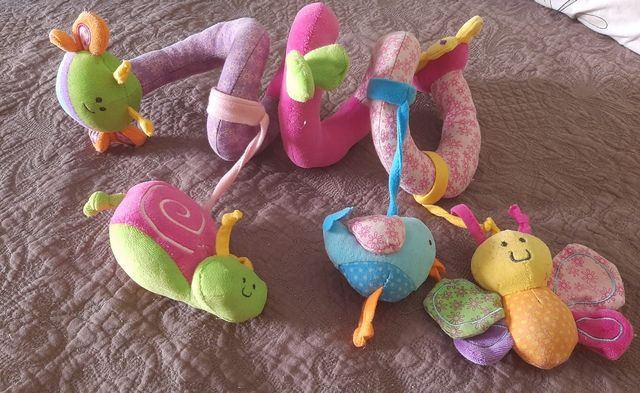 - Incluye un gusano, un caracol, un pájaro y una mariposa.