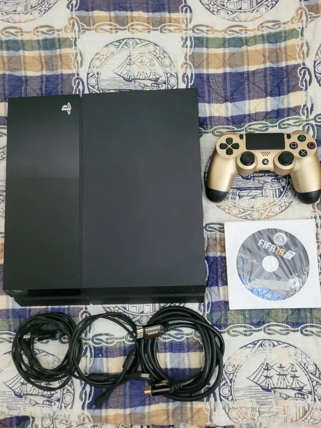 Sony PS4 FAT Negra + Mando Dorado + FIFA 18