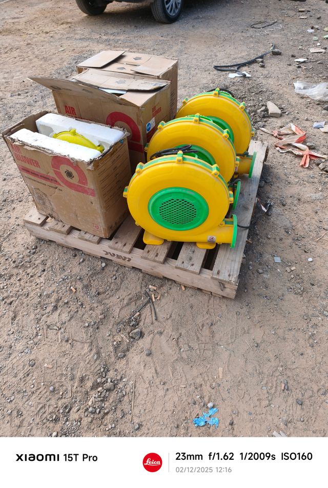 Detalles del productoSoplador de aire de color amarillo y verde, con una potencia de 590W. Ideal para inflar estructuras.