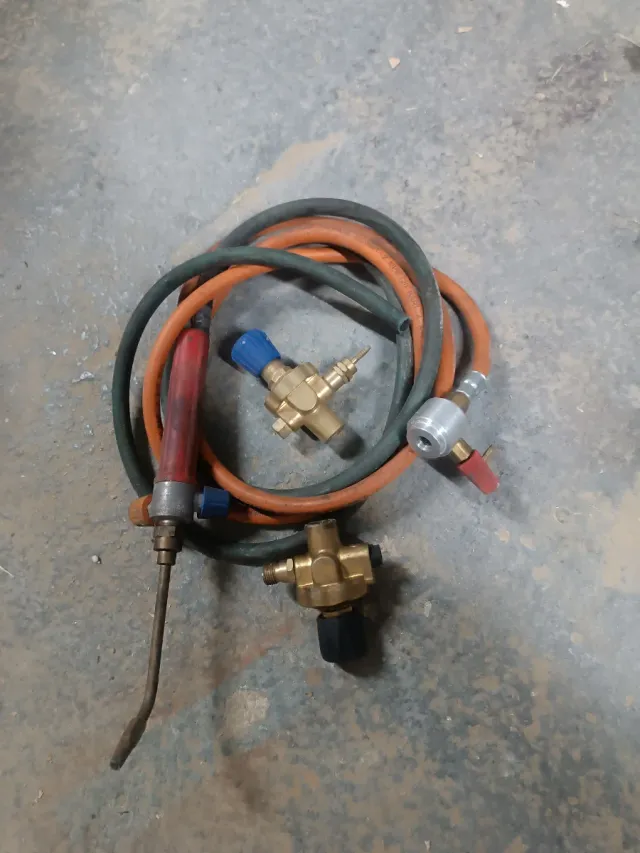 Minisoplete con mangueras y racores para botellas pequeñas.