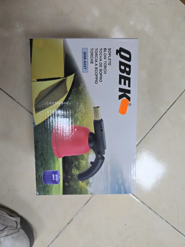 Soplete de la marca QBEK, modelo GHA-6237. - Diseño ergonómico para un agarre cómodo. - Incluye un pequeño tanque de gas azul.
