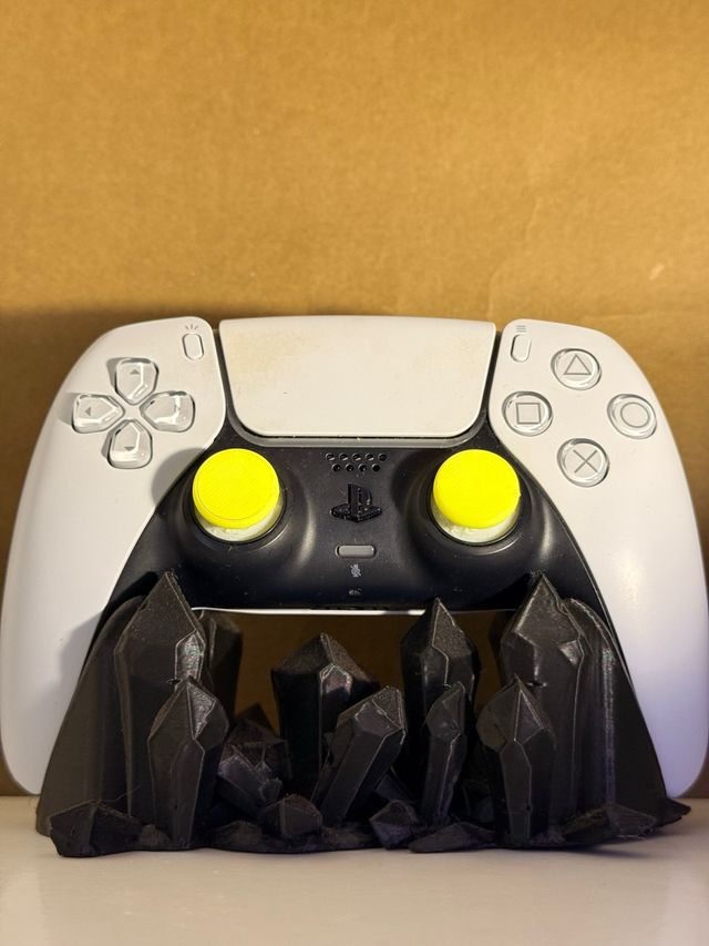 Este soporte está diseñado para exhibir tu mando de PS5 de una forma única y llamativa. - Diseño inspirado en cristales oscuros. - Pieza impresa en 3D.