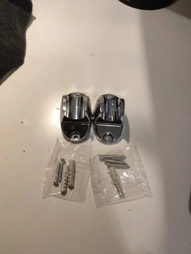 Soporte para alcachofa de ducha, ideal para tu baño. 2€ unidad - Fabricado en plástico. - Color plateado y blanco.