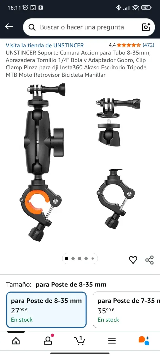 Detalles del productoSoporte para cámara de acción UNSTINCER.