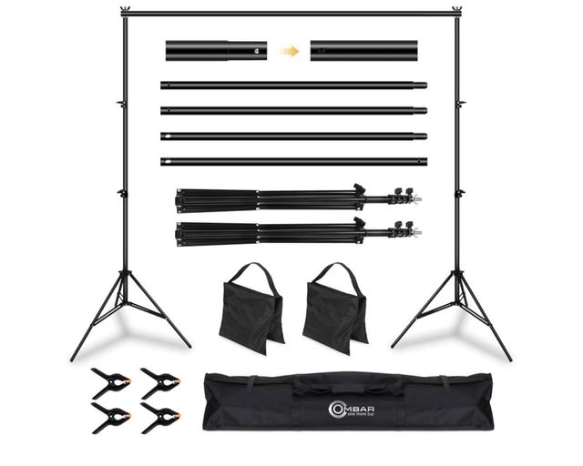 Soporte de fondo fotográfico. Ajustable soporte photocall con 4 Abrazaderas Fondo y 2 Bolsas Arena. Sin estrenar, en su embalaje