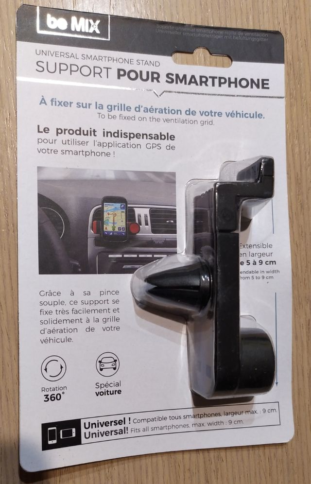 Detalles del productoSoporte para móvil para ser fijado en la rejilla de ventilación de tu vehículo.