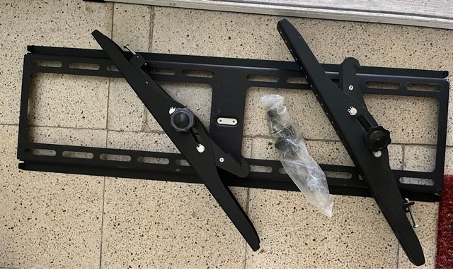 Detalles del productoSoporte de pared para televisión en color negro. Incluye los brazos ajustables y tornillería.