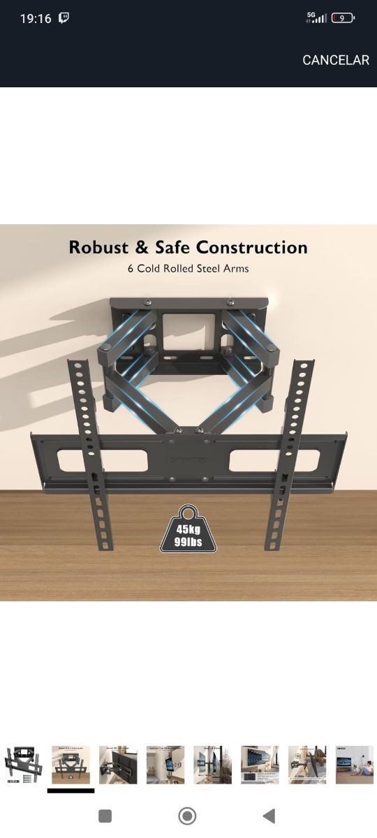 Soporte de pared para TV con construcción robusta y segura. - Fabricado con 6 brazos de acero laminado en frío. - Soporta hasta 45 kg (99 lbs).