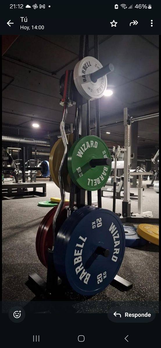 soporte realizado en acero, para discos olímpicos de 50 mm. tambien disponible para discos de 28mm.