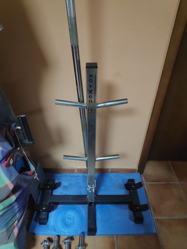 Detalles del productoSoporte para discos y barras. Dispone de capacidad para dos barras, dos Mancuernas y para un gran número de discos.
