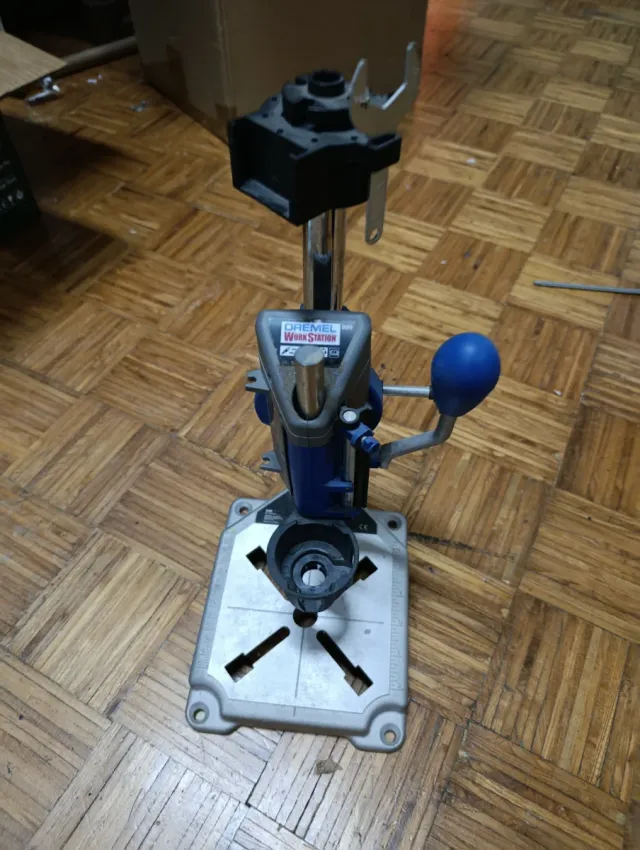 Soporte Dremel Workstation para sujetar tu herramienta Dremel. - Base estable. - Columna vertical. - Mecanismo de sujeción.