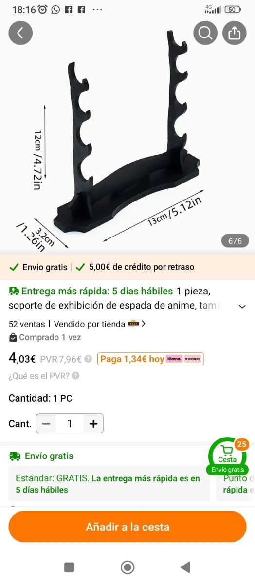 Detalles del producto3 Soporte de exhibición para espada de anime, ideal para figuras pequeñas. Es de color negro y tiene un diseño elegante y sobrio.
