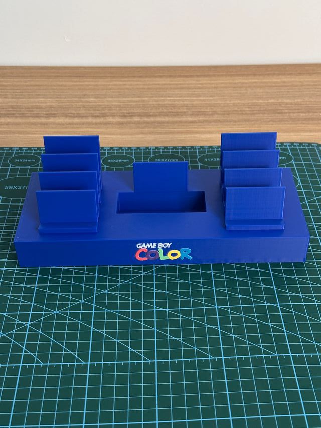 ¡Organiza y exhibe tu Game Boy Color y tus cartuchos favoritos con este práctico y colorido soporte impreso en 3D!