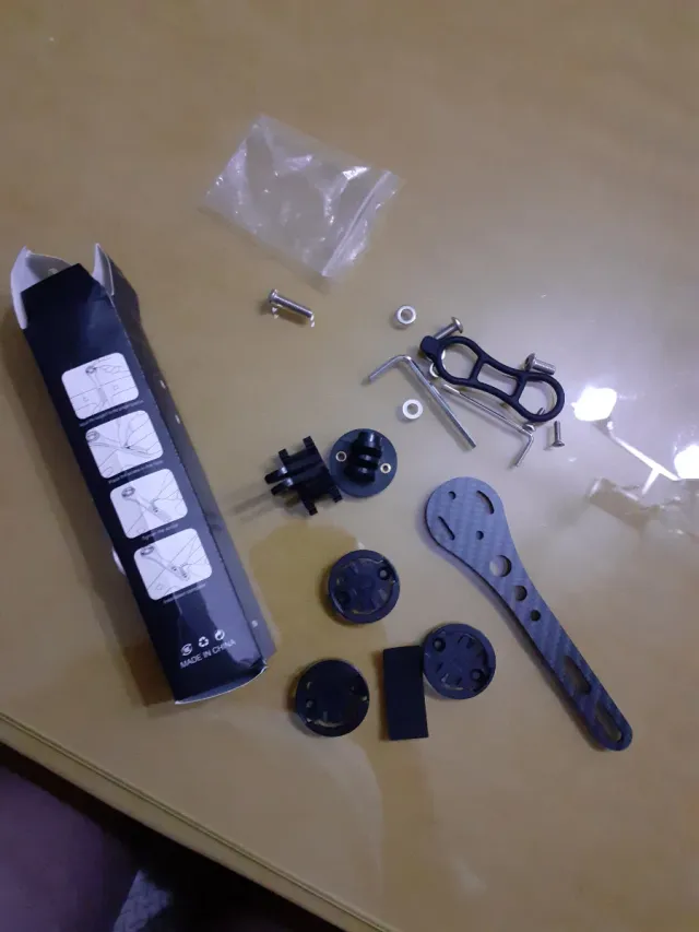 Kit de soporte para ciclocomputador Garmin, fabricado en carbono. - Incluye soportes y tornillería. - Diseño ligero y resistente.