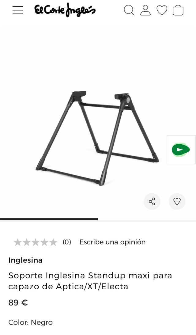 Soporte para capazo de la marca Inglesina, modelo Standup maxi. - Color: Negro. - Compatible con modelos Aptica/XT/Electa.