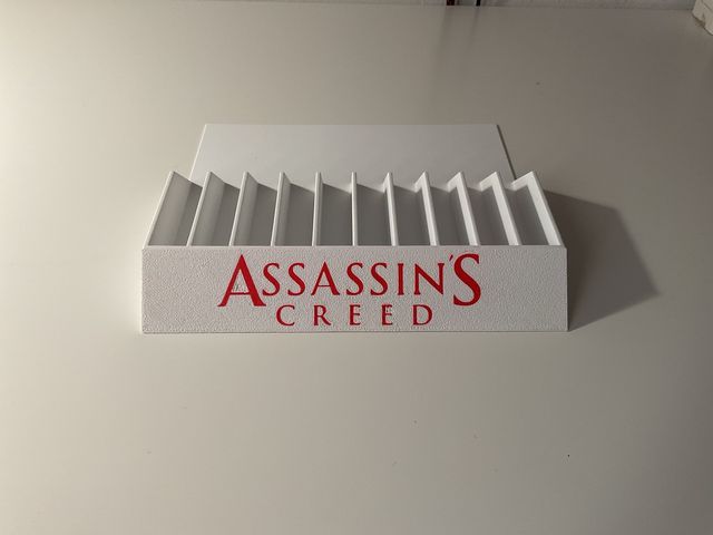 Detalles del productoSoporte para juegos de PS4 con diseño de Assassin's Creed. Ideal para organizar tu colección. Hecho con impresora 3D