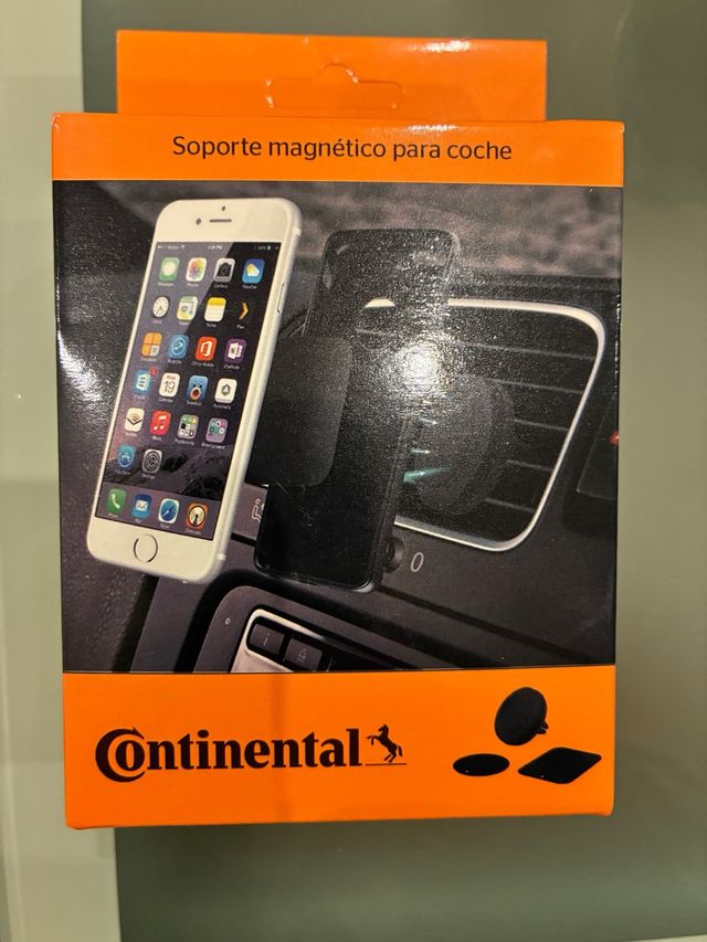 Soporte magnético para coche de la marca Continental. - Diseño elegante y funcional. - Incluye base adhesiva y placa metálica.