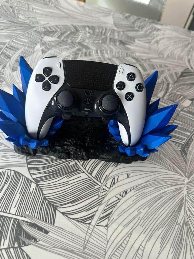 Soporte decorativo con forma de cristales azules, ideal para colocar mandos de consola. - Diseño de cristales azules. - Base negra texturizada.