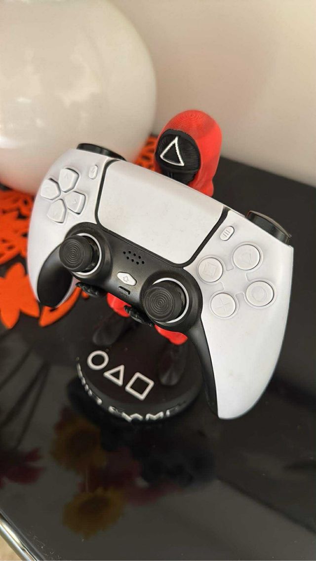 Soporte temático del Juego del Calamar para mando de PS5. Presenta un diseño inspirado en uno de los personajes de la serie.