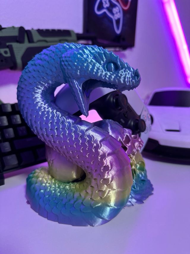 Detalles del productoOriginal soporte para mando de PS5 con diseño de serpiente. El acabado iridiscente cambia de color con la luz.