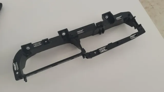 Soporte para la maneta del conductor de un Golf IV. - Está nueva sin estrenar. - Pieza de plástico negro. - Incluye elementos metálicos de sujeción.