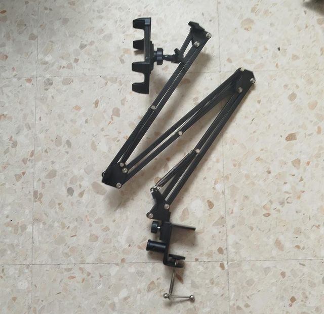 Detalles del productoSoporte articulado para colocar tablets u otros dispositivos móviles. Está en buenas condiciones y listo para usar.