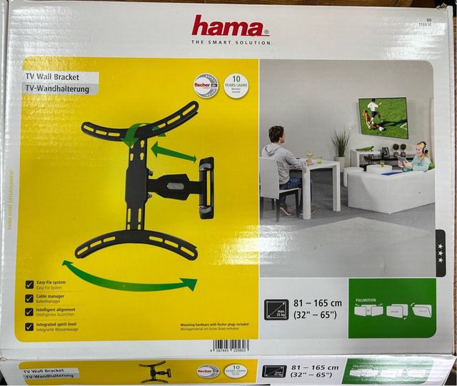 Detalles del productoPara la instalación de pantallas planas, sistema Easy-Fix para orientar el televisor de forma sencilla y sin etapas; el organizador de cables aporta orden y el alivio de tracción necesario para los cables; después de instalario, el soporte se puede nivelar horizontalmente en la pared con ayuda de los agujeros alargados, nivel de burbuja integrado para un