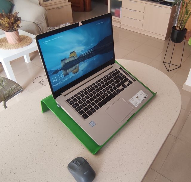 Detalles del productoSoporte para el ordenador portátil y tablets que permite trabajar con la pantalla más elevada y mejorar la comodidad en el trabajo y tecleado. Mide 42cm de ancho, 30 de profundidad y 10 de alto.