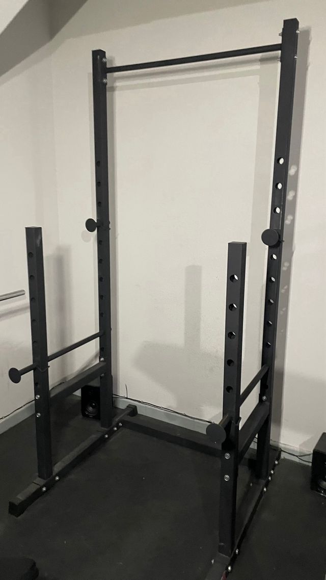 Detalles del productoPermite entrenar sentadillas, banca, militar, dominadas, etc. Cuenta con barras de seguridad regulables en altura para poder entrenar todo el cuerpo solo y de forma segura. Se puede colocar una polea en la barra de dominadas para hacer ejercicios desde arriba como pullover, jalón al pecho, extensiones de tríceps, etc, y colocar otra polea en la unión de los postes de abajo para tener ejercicios de polea desde abajo, como curl bíceps, elevaciones laterales, etc. Posibilidad de vender junto con las poleas y los cables. Las dimensiones son: 205x100x100. El más similar que he encontrado cuesta 280€.