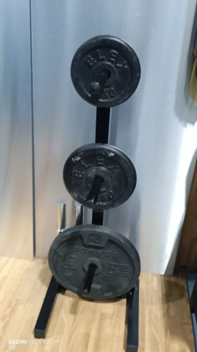 Detalles del productoSoporte vertical para organizar discos de pesas en tu gimnasio o hogar. Fabricado en metal resistente.