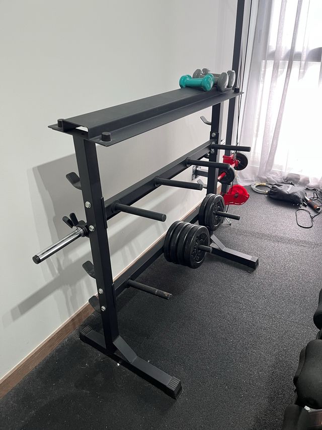 Detalles del productoSoporte de para organizar discos de pesas y barras.