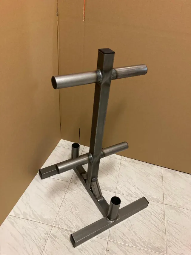 - Soporte de acero compatible con los discos Olimpicos Bumper