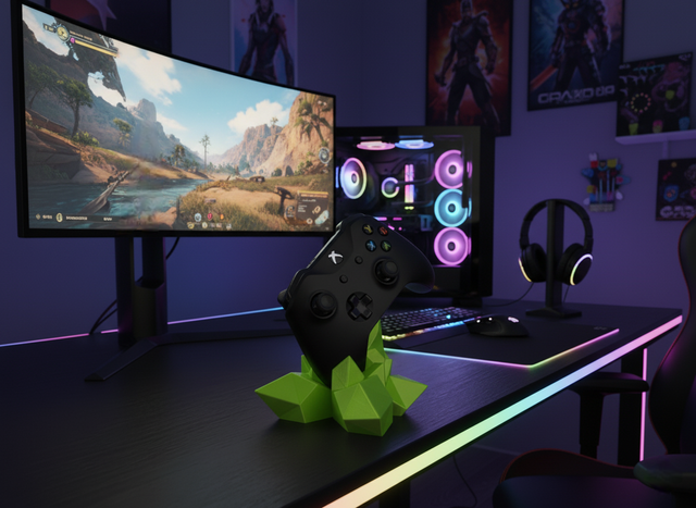 Detalles del productoEste soporte para mando de Xbox está diseñado para mantener tu control siempre a la vista y listo para jugar. Su forma geométrica y base estable aportan un toque chulo a tu setup gamer.