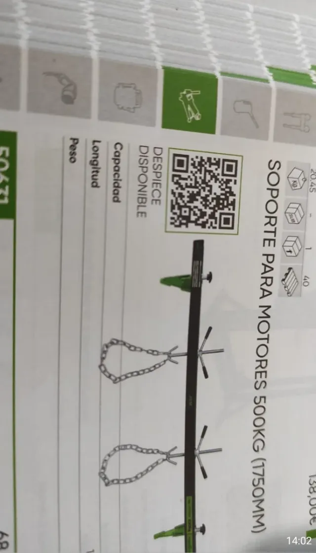 Soporte para motores con capacidad de 500kg y una longitud de 1750mm. - Capacidad: 500 kg - Longitud: 1750 mm - Peso: 20.45 kg