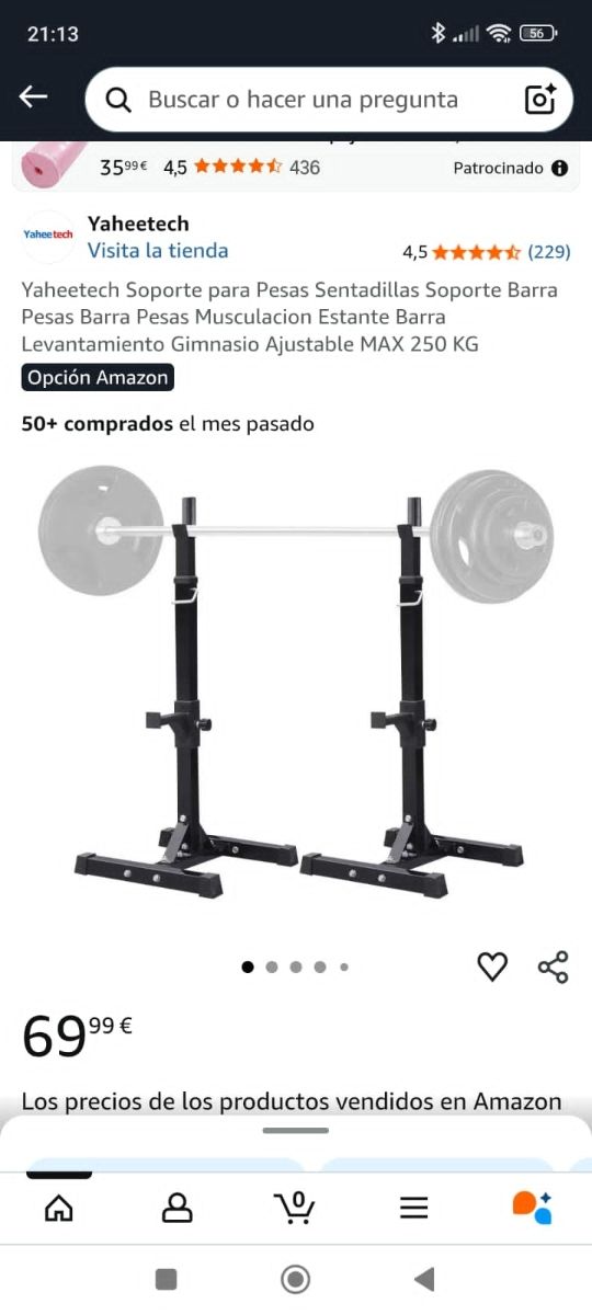 Soporte para pesas de gimnasio, ajustable y robusto. - Marca: Yaheetech - Capacidad máxima: 250 KG - Ideal para sentadillas y levantamiento de barra.