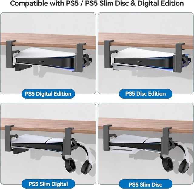 Detalles del productoSoporte para colocar tu consola PlayStation 5 (PS5) o PlayStation 5 Slim debajo de un estante.