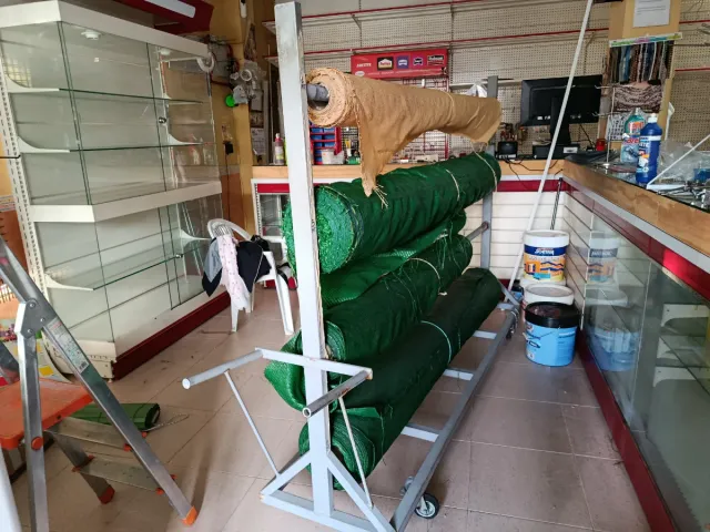 Práctico soporte para almacenar y transportar rollos de malla. - Estructura metálica. - Ruedas para fácil movilidad. - Diseñado para rollos de gran tamaño.