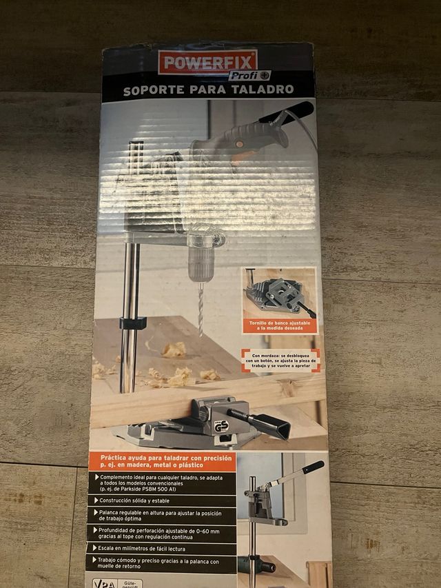 Detalles del productoSoporte para taladro Powerfix Profi, ideal para trabajos de precisión en madera, metal o plástico. Complemento versátil para taladros.