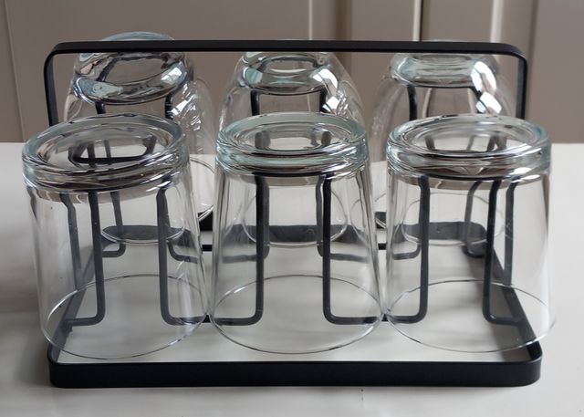 Soporte / estante para vasos y tazas. Medidas en la primera foto. Es de hierro esmaltado y lacado en negro. NUEVO sin usar
