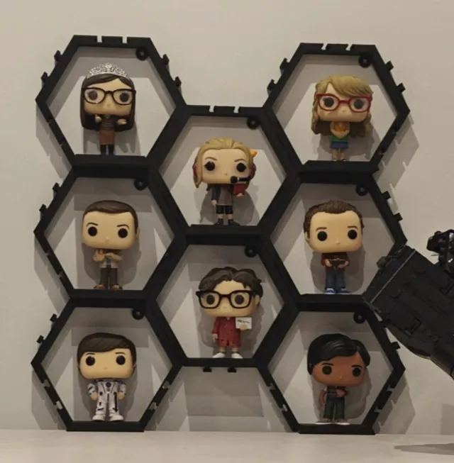 Detalles del productoSoporte de pared con diseño hexagonal para exhibir figuras Funko Pop. Ideal para organizar y decorar tu espacio.