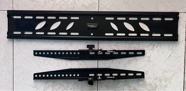 Detalles del productoSoporte de pared para televisor, ideal para fijar tu TV de forma segura a la pared. El kit incluye tres piezas: una barra principal y dos soportes laterales.