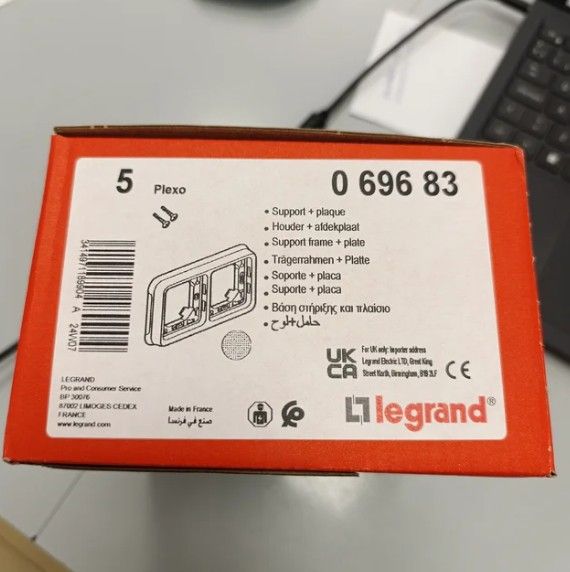 Marco embellecedor dos elementos de empotrar Legrand Plexo antigua, color gris. Venta a coste 7,50€/u. Referencias: 069683, 3245060696832, 70794/49, 96964/96.