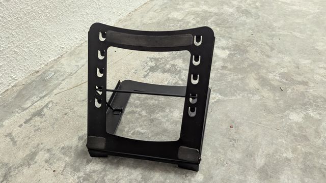Soporte de metal negro para portátil. - Diseño ergonómico. - Compatible con portátiles de hasta 17 pulgadas. - Base estable.