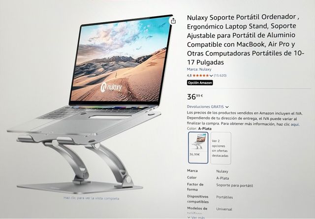 Detalles del productoSoporte ergonómico para portátil de aluminio.