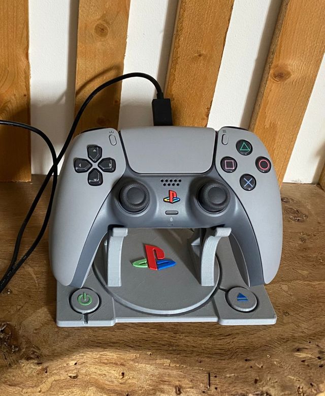 Detalles del productoSoporte para mandos de Playstation 5 con diseño que imita a la consola Playstation 1.