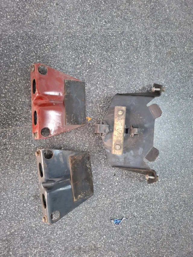 Detalles del productoSoporte para rueda de recambio de Iveco. Pieza metálica con acabado en pintura roja y negra.
