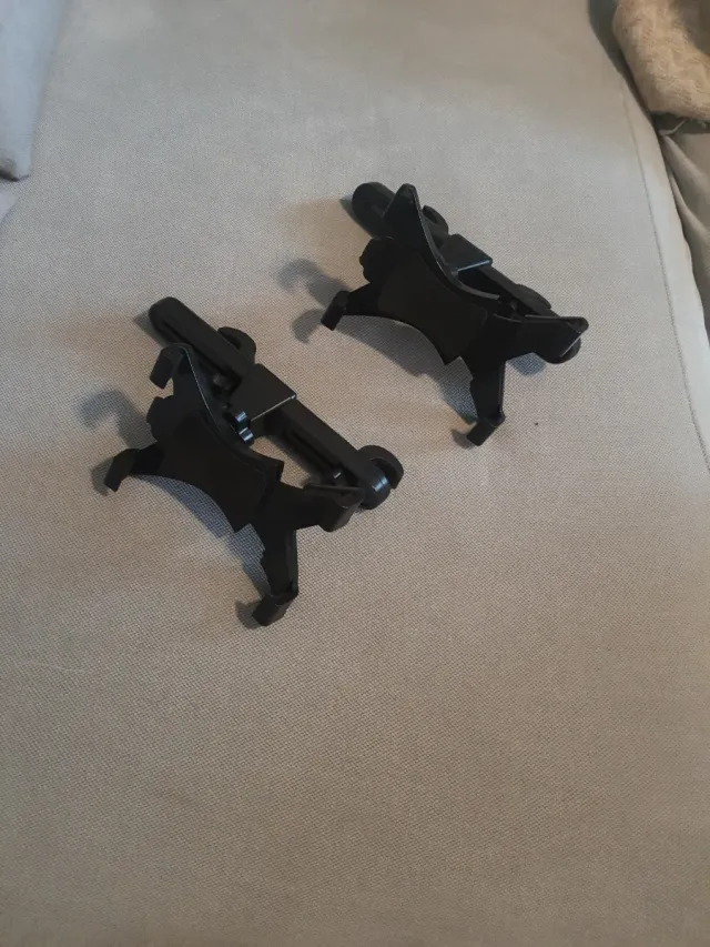 Par de soportes negros para tablet en el coche. Diseñados para sujetar tu dispositivo de forma segura. - Color negro. - Material plástico resistente.