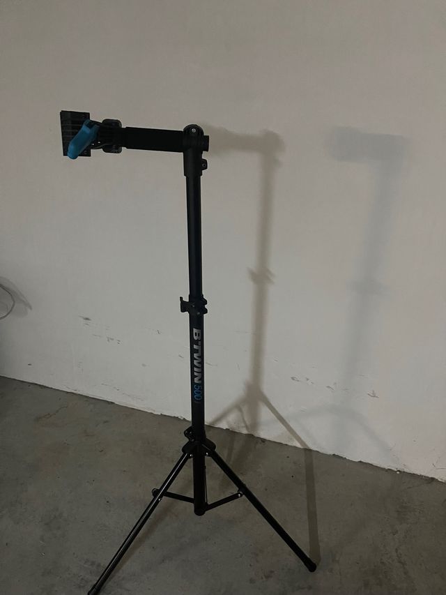 Detalles del productoSoporte de taller plegable para bicicletas, modelo Btwin 500. Es fácil de montar y desmontar.